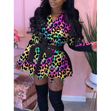 Lovely Trendy Turndown Collar Leopard Print Patchwork Purple Coat