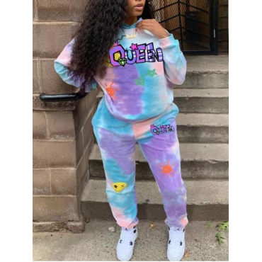 Lovely Casual Hooded Collar Tie Dye Gradient Multicolor Two Piece Pants Set