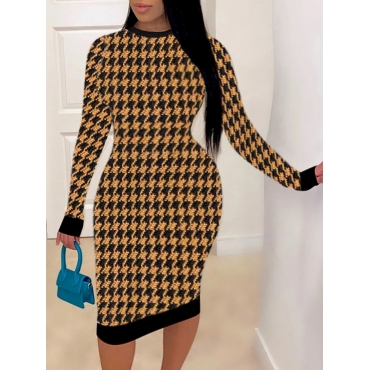 Lovely Casual Plaid Print Patchwork Yellow Plus Size Knee Length Dress