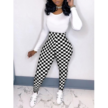 Lovely Chic Geometric Print Patchwork Black And White Pants