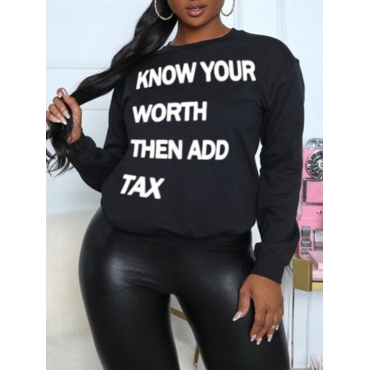 Lovely Street O Neck Letter Print Black Plus Size Hoodie
