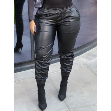 Lovely Casual High-waisted Drawstring Black Plus Size Pants