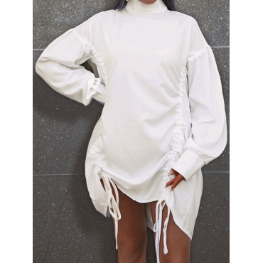 Lovely Casual Fold Design Drawstring White Mini Dress
