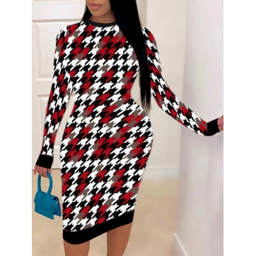 Lovely Casual Plaid Print Patchwork Red Plus Size Knee Length Dress
