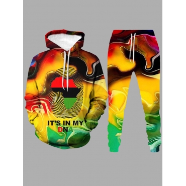 Lovely Street Africa Print Patchwork Multicolor Men Two Piece Pants Set