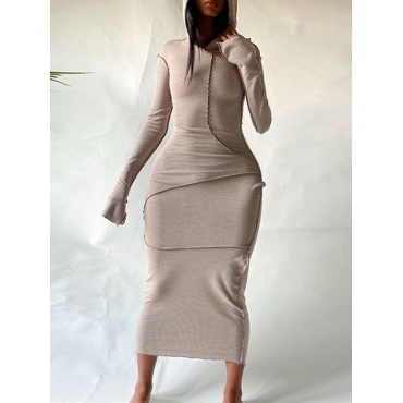 Lovely Casual Hooded Collar Basic Skinny Khaki Mid Calf Dress