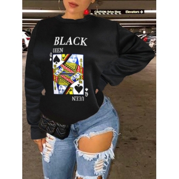 Lovely Street Card Print Patchwork Black Hoodie