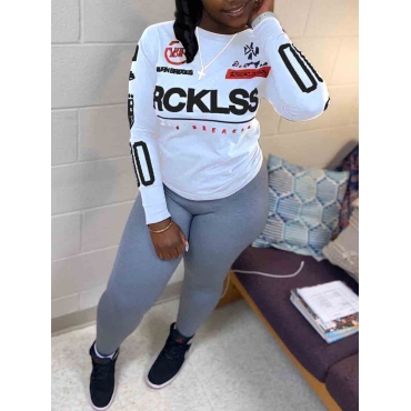 Lovely Sportswear O Neck Letter Print White Two Piece Pants Set