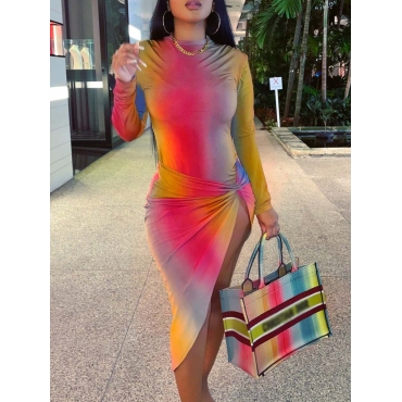 Lovely Trendy Gradient Side High Split Multicolor Knee Length Dress