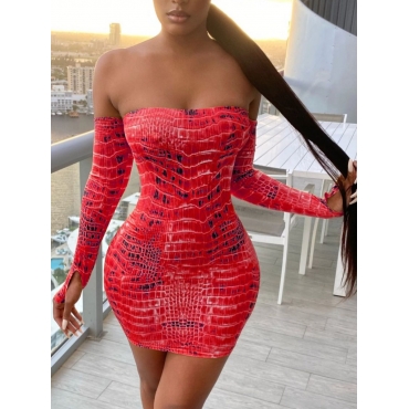 Lovely Trendy Bateau Neck Animal Print Red Mini Dress