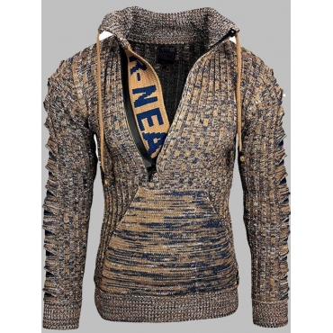 Lovely Stylish Letter Print Kangaroo Pocket Brown Men Sweater
