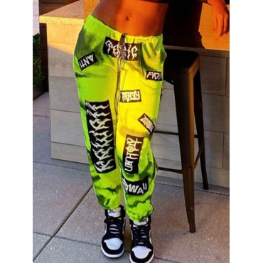 Lovely Street Letter Print Drawstring Green Pants