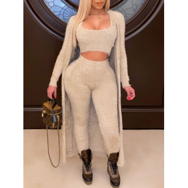 Lovely Casual U Neck Basic Skinny Apricot Three Piece Pants Set