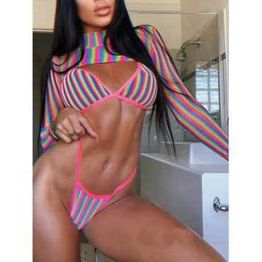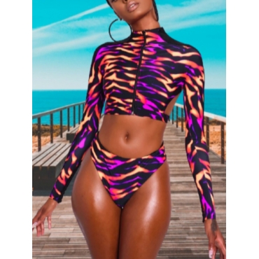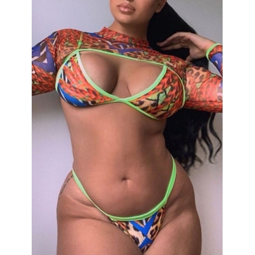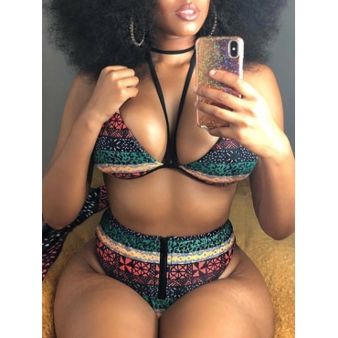 Lovely Sexy Geometric Print Patchwork Multicolor Two-piece Swimsuit