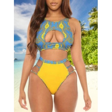 Lovely Trendy Geometric Print Patchwork Multicolor Two-piece Swimsuit