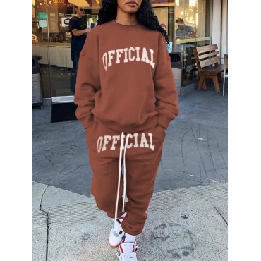 Lovely Casual Letter Print Drawstring Brown Two Piece Pants Set
