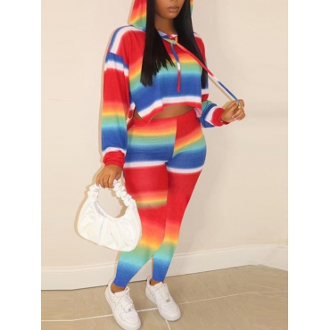 Lovely Casual Hooded Collar Gradient Multicolor Two Piece Pants Set