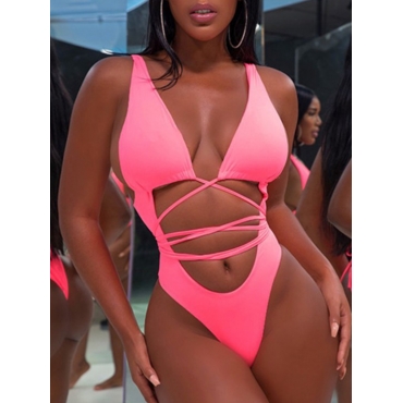 Lovely Casual Bandage Hollow-out Design Rose Red One-piece Swimsuit