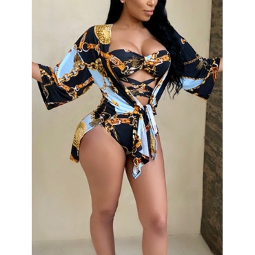 Lovely Trendy Chain Print Patchwork Black Two-piece Swimsuit