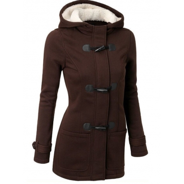 Lovely Casual Hooded Collar Button Design Coffee Coat