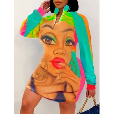 Lovely Sportswear Dropped Shoulder Sleeve Print Multicolor Knee Length Plus Size Dress