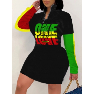 Lovely Casual Turtleneck Graffiti Letter Print Black Plus Size Mini Dress