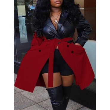 Lovely Stylish Turndown Collar Patchwork Red Trench Coat