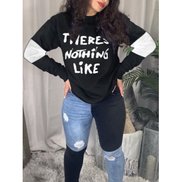 Lovely Casual O Neck Letter Print Patchwork Black Hoodie