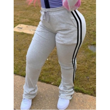 Lovely Leisure Striped Drawstring Grey Pants