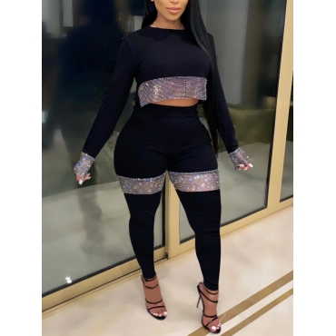 Lovely Casual O Neck Patchwork Black Plus Size Two-piece Pants Set