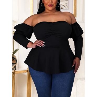 Lovely Casual Off The Shoulder Fold Design Black Plus Size Blouse