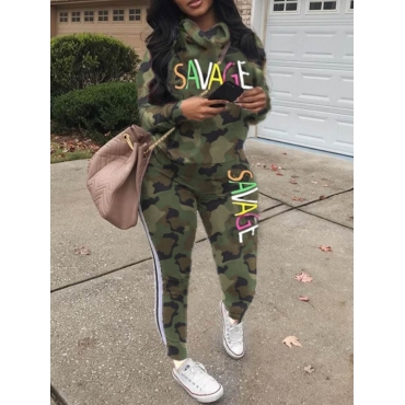 Lovely Sportswear Letter Print Striped Army Green Two Piece Pants Set