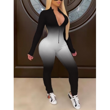 Lovely Casual Gradient Zipper Design Black One-piece Jumpsuit