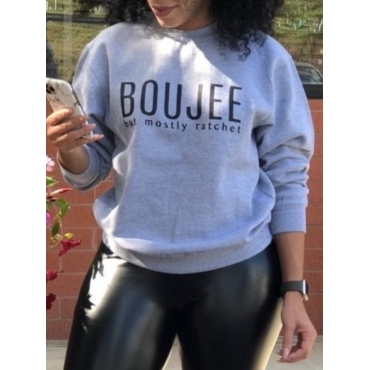 Lovely Casual O Neck Letter Print Grey Hoodie