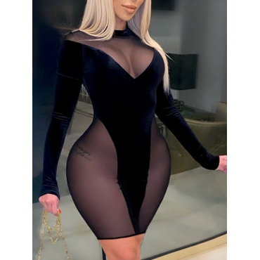 Lovely Party See-through Patchwork Black Knee Length Plus Size Dress