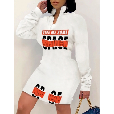Lovely Sportswear Letter Print Patchwork White Knee Length Dress