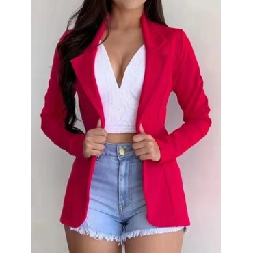 Lovely Work Turndown Collar Long Sleeve Red Blazer