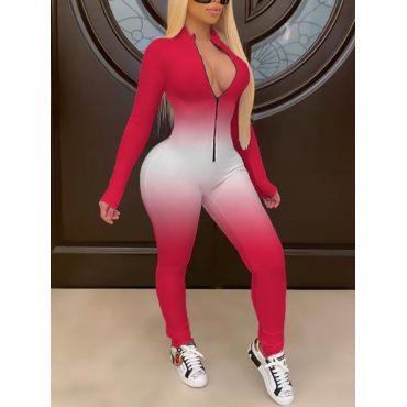 Lovely Casual Gradient Zipper Design Red One-piece Jumpsuit