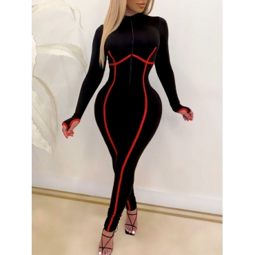 Lovely Street Half A Turtleneck Patchwork Black One-piece Jumpsuit