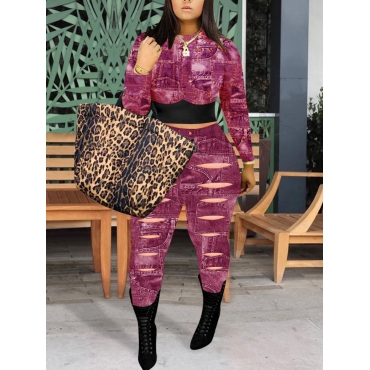 Lovely Street Hollow-out Patchwork Purple Two Piece Pants Set