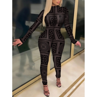 Lovely Casual Half A Turtleneck Print Black One-piece Jumpsuit