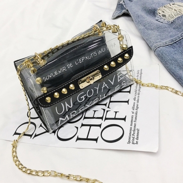 Lovely Trendy Letter See-through Black Crossbody Bag