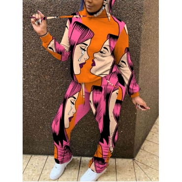Lovely Street Hooded Collar Graffiti Element Print Croci Two Piece Pants Set