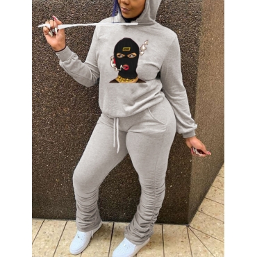 Lovely Casual Hooded Collar Print Grey Two Piece Pants Set
