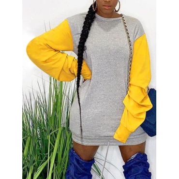 Lovely Casual O Neck Patchwork Grey Mini Dress
