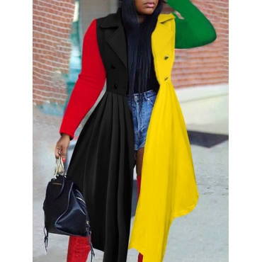 Lovely Stylish Turndown Collar Ruffle Design Patchwork Yellow Trench Coat
