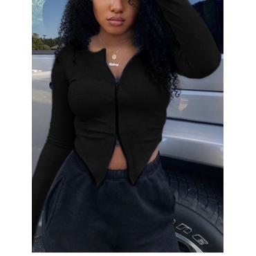 Lovely Street Zipper Design Asymmetrical Black T-shirt