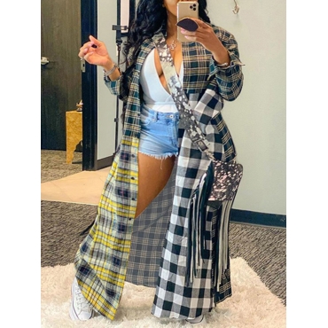 Lovely Casual Plaid Print Patchwork Multicolor Trench Coat