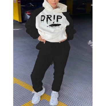 Lovely Casual Letter Print Patchwork Black Two Piece Pants Set