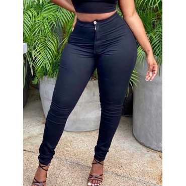 Lovely Casual Mid Waist Zipper Design Black Pants